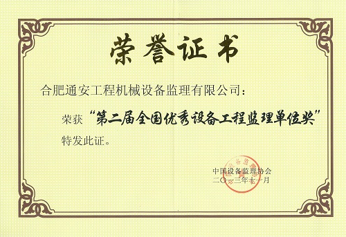 第二屆全國優(yōu)秀設(shè)備工程監(jiān)理單位獎(jiǎng)
