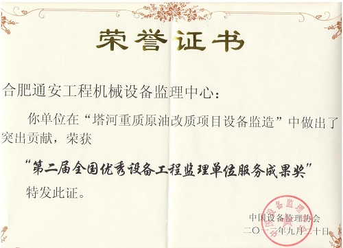 第二屆全國優(yōu)秀設(shè)備工程監(jiān)理服務(wù)成果獎