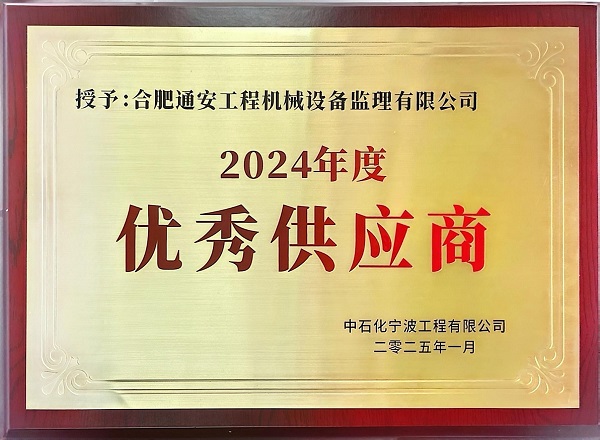 2024年度中石化寧波工程有限公司優(yōu)秀供應(yīng)商