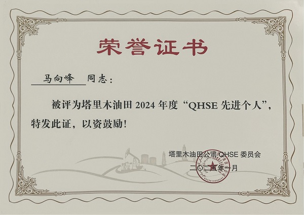 2024年度塔里木油田QHSE先進(jìn)個(gè)人