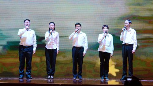 整場演出以大家喜聞樂見的歌曲、舞蹈、詩朗誦、合唱等形式傾情演繹。歌曲《唱支山歌給黨聽》唱出了對黨的無限忠誠與熱愛。舞蹈《理想照耀中國》《燈火里的中國》彰顯了革命理想高于天的崇高境界,展望未來中國鋪陳開新的美好前景。表演唱《青春之我》《我們都是追夢人》與歌舞《少年》展現(xiàn)了新一代青年奮勇向前、逐夢時代的精氣神。韻律操《奔跑的青春》帶領(lǐng)全場觀眾感受青春的脈搏,體悟年輕的律動。歌曲《懷念戰(zhàn)友》表現(xiàn)了戰(zhàn)士誓死守衛(wèi)祖國邊疆的愛國情懷和戰(zhàn)友之間的真摯情感。詩朗誦《清貧(節(jié)選)》將一名優(yōu)秀共產(chǎn)黨員的光輝形象和感人故事帶回我們眼前。小合唱《喀秋莎》歌詠了經(jīng)過戰(zhàn)火洗禮的動人愛情。大合唱《紅軍不怕遠(yuǎn)征難》再現(xiàn)了共產(chǎn)黨人二萬五千里長征路上的艱苦卓絕,《在太行山上》 傳頌了抗日軍民的必勝信心。